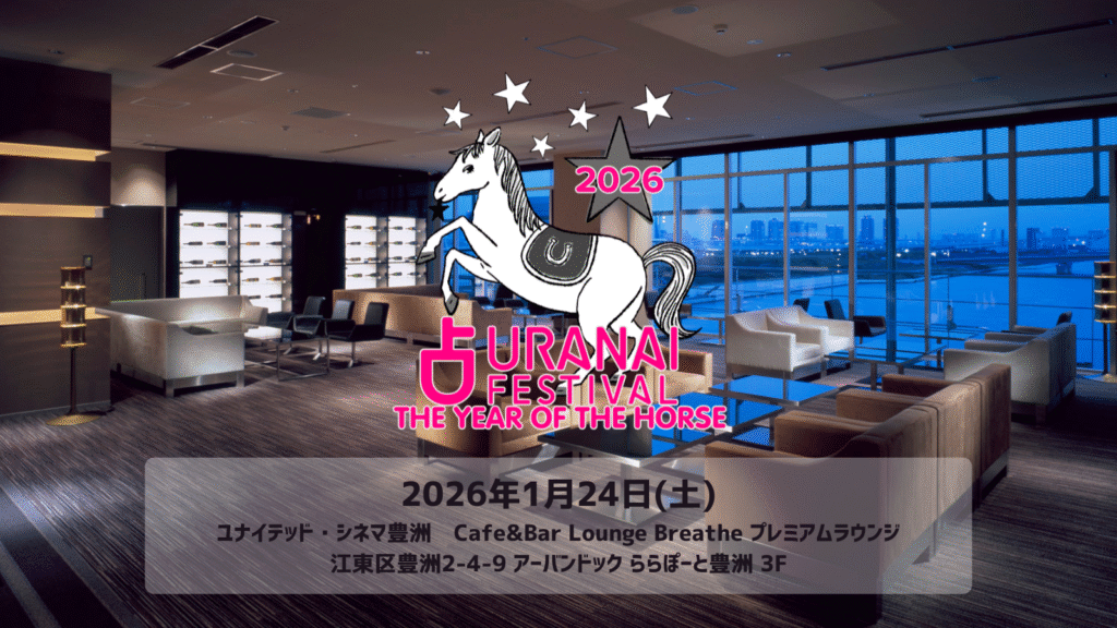 2025-12-03 News 2026年の開運は豊洲から!「占いフェス 2026 NEW YEAR」開催 絶景オーシャンビューで“運気チャージ”。事前予約で、人気占い師・暮れの酉監修「フォーチュンブレスレット」をプレゼント! 冬の東京湾を一望できるラウンジで、恋も仕事も金運も“全方向に開運”する特別な1日を過ごしませんか?新年の幕開けにふさわしい、パワースポットイベント「占いフェス 2026 NEW YEAR」が、豊洲で開催決定。2026年1月24日(土)、東京・ららぽーと豊洲内の「ユナイテッド・シネマ豊洲 Cafe&Bar Lounge Breathe プレミアムラウンジ」にてお待ちしております。 冬の東京湾を一望できるオーシャンビューのラウンジは、“いるだけで気分が上がる、まるでパワースポット”のような開運空間。今回は名物「5分占い」に、女性誌やYouTubeでも活躍し、過去の占いフェスでも予約枠が即完売した人気占い師・蝦名里香がついに登場。また、最近人気復活中の婚活パーティーで話題の占い師や、結婚相談のプロが悩める婚活女子を導く 新コーナー 「行列のできる結婚相談占い」 も登場します。さらに、来場者全員に配布する「開運ガイドブック」には、 12星座別2026年運勢、金運カレンダー、開運美容など、 新年らしいハッピーになれるヒントがぎっしり。恋も仕事も金運も人間関係も、来場者全員が“ぜんぶ開運”へ向かう特別な一日をお届けします。12月21日からスタートする鑑定の事前予約では、人気占い師・暮れの酉さん監修 「フォーチュンプレスレット」のプレゼントが決定! 数量限定ですのでお早めに。 2026年の幸運は、この日から!初詣の予定と一緒にカレンダーへ書き込んで。 ■干支“午”×馬蹄ロゴで、2026年の運気を一気にジャンプ 2026年を象徴する「午(うま)」にちなんだ特別ロゴは、イラストレーター兼占い師・小田島さよさんがデザイン。 馬蹄(ホースシュー)は世界中で「幸運を呼ぶシンボル」。 “あなたの一歩が誰かの幸せにもつながる”という前向きなエネルギーを込めています。 ■人気声優 × 占いフェス で新感覚の開運体験! ユナイテッドシネマ豊洲会場の、隣のスクリーンでは、人気占いコンテンツ『君ノ隣ニ座ル星。(https://suwaruhoshi.com/)』のアプリ化を記念したニコニコチャンネル+の公開生配信イベントが同時開催! 岡本信彦さん、榊原優希さん、島﨑信長さん(50音順)という人気声優さんのラインナップが会場を開運の渦に巻き込みます! ※出演者などの詳細は『君ノ隣ニ座ル星。』公式Xをご確認ください https://x.com/ki_mi_no_su_00 ■前売り発売は“2025年最後の最強開運日”スタート! 年内最後の 一粒万倍日 × 天赦日 × 天恩日が重なるスペシャルデー。占いフェスの鑑定前売り券はこの日、発売開始いたします!・発売開始:12月21日(日)10時〜・チケット発売サイト(Teket):https://teket.jp/8568/61261 【参加占い師のご紹介】 5分占い葵ソラ天和河みち内田真代蝦名里香神木一心クリスティーン・デリコ小田島さよ椎名清瀧高原由佳星野壱升眞陽留LANA行列のできる結婚相談占い(15分)暮れの酉多路渡よし子生田目浩美。明蘭※50音順※5分占い、結婚相談占いともに占い師の指名はできません。 【鑑定の参加方法】 前売り券(暮れの酉監修 限定フォーチュンブレスレット付き)【限定】5分占い 価格:2,200円(税込)【限定】行列のできる結婚相談占い(15分) 価格:4,400円(税込)※いずれの前売り券にも、暮れの酉監修「フォーチュンブレスレット」が付属します。 ※ブレスレットのデザインはランダムです。当日券 5分占い:1,100円(税込)行列のできる結婚相談占い(15分):5,500円※事前予約の状況により、当日券は販売されない場合がございます。※当日出演する占い師は前半/後半で入れ替えがございます。※前売り券は、当日会場にて【鑑定整理券】と引き換えてからご利用いただけます。チケット詳細・お申し込みはこちらから!・チケット発売サイト(Teket):https://teket.jp/8568/61261・占いフェス公式サイト:https://uranaifes.com/・占いフェス公式Instagram:https://www.instagram.com/uranaifes/ 【イベント概要】 ・日時:2026年1月24日(土)11:00~18:00(10:30受付開始) ・会場:ユナイテッド・シネマ豊洲 (Cafe&Bar Lounge Breathe プレミアムラウンジ) ・会場HP:https://www.unitedcinemas.jp/toyosu/breathe/index.html ・コンテンツ:鑑定(5分占い・行列のできる結婚相談占い)、開運ガイドブック、生配信イベント、物販 ・最新情報は 占いフェス公式サイト・Instagramより ※配信イベントのチケットは『君ノ隣ニ座ル星。』公式Xをご確認ください。 https://x.com/ki_mi_no_su_00 アクセス方法 ・電車でのアクセス 東京メトロ有楽町線「豊洲駅」2b出口より徒歩3分 ゆりかもめ「豊洲駅」より徒歩5分 「ららぽーと豊洲」3階シネマ棟 公式サイト:https://mitsui-shopping-park.com/lalaport/toyosu/
